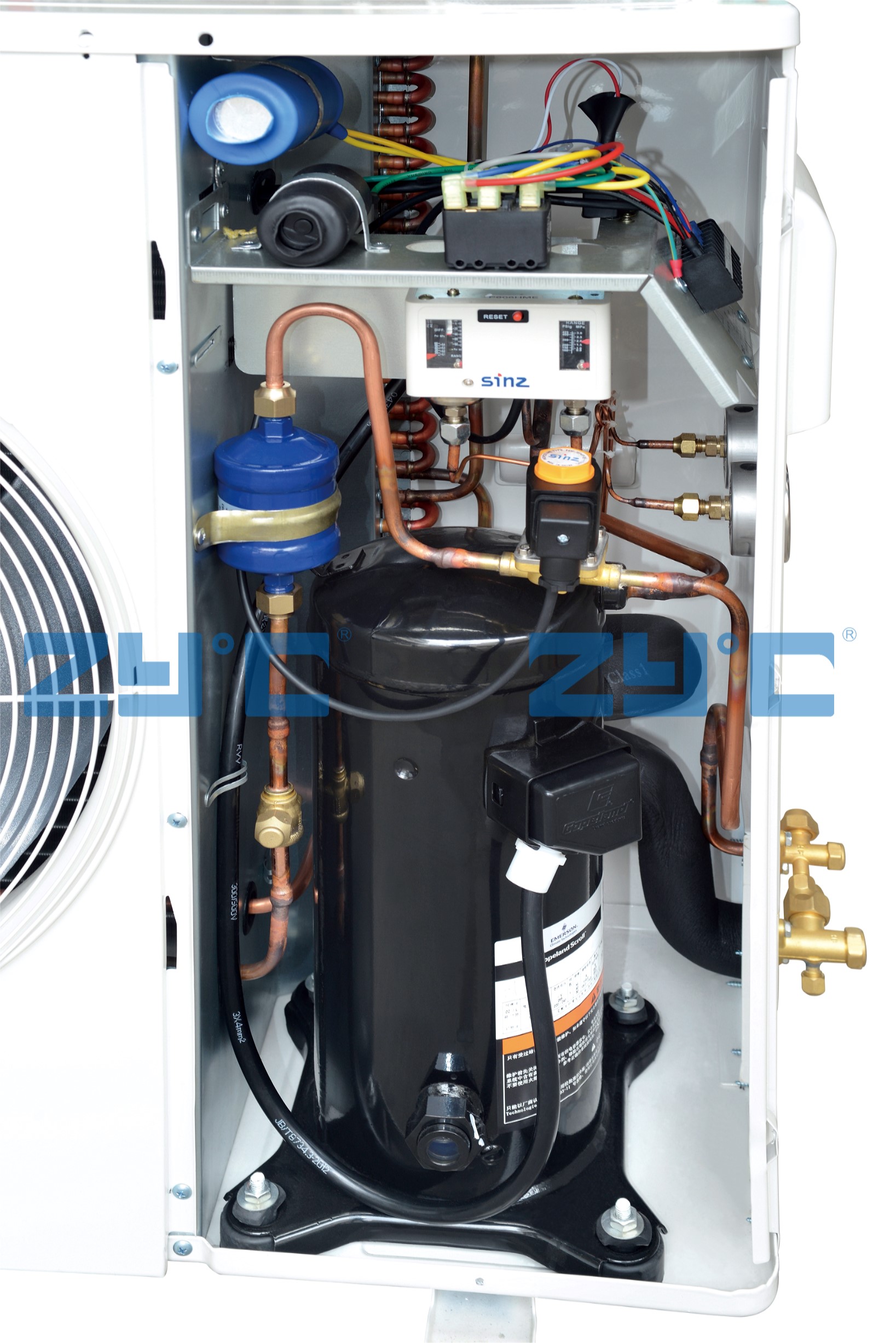 ? 標(biāo)準(zhǔn)配置:中高溫渦旋壓縮機(jī),高效內(nèi)螺紋銅管,親水藍(lán)膜冷凝器,低噪音空調(diào)風(fēng)機(jī),電磁閥,過濾器,儲(chǔ)液器,充油高低壓力表,高/低壓控器,視液鏡,3GS/POE冷凍油